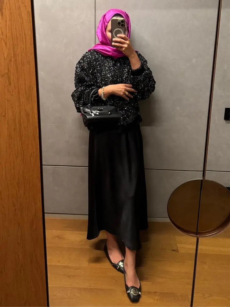 Pul Payetli Palazzo Kesim Bloom Pantolon PNT100279 – Siyah